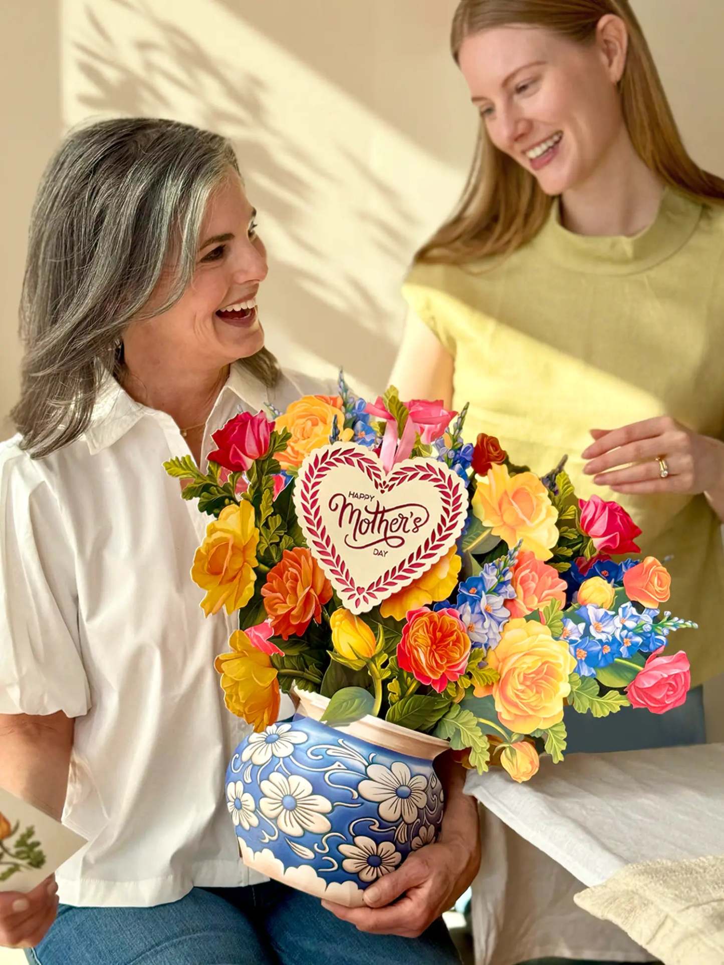 Treat Mom to something truly special with our vibrant Sorbet Roses bouquet — four dozen stems in raspberry red, tangerine orange, strawberry pink, and limoncello yellow. As bold and beautiful as she is, this stunning arrangement is paired with a sweet Pink Mother's Day Heart, a matching notecard, and a Mother's Day keepsake for a gift she'll truly treasure.